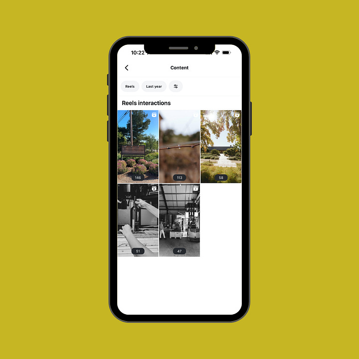 Reach is the number of individual accounts that have seen a post. This is an important metric for just about any goal you have, but it’s especially important if your goal is brand awareness, because it shows which posts and post types (carousel, photo, or Reel) got out in front of the most (or least) number of people.